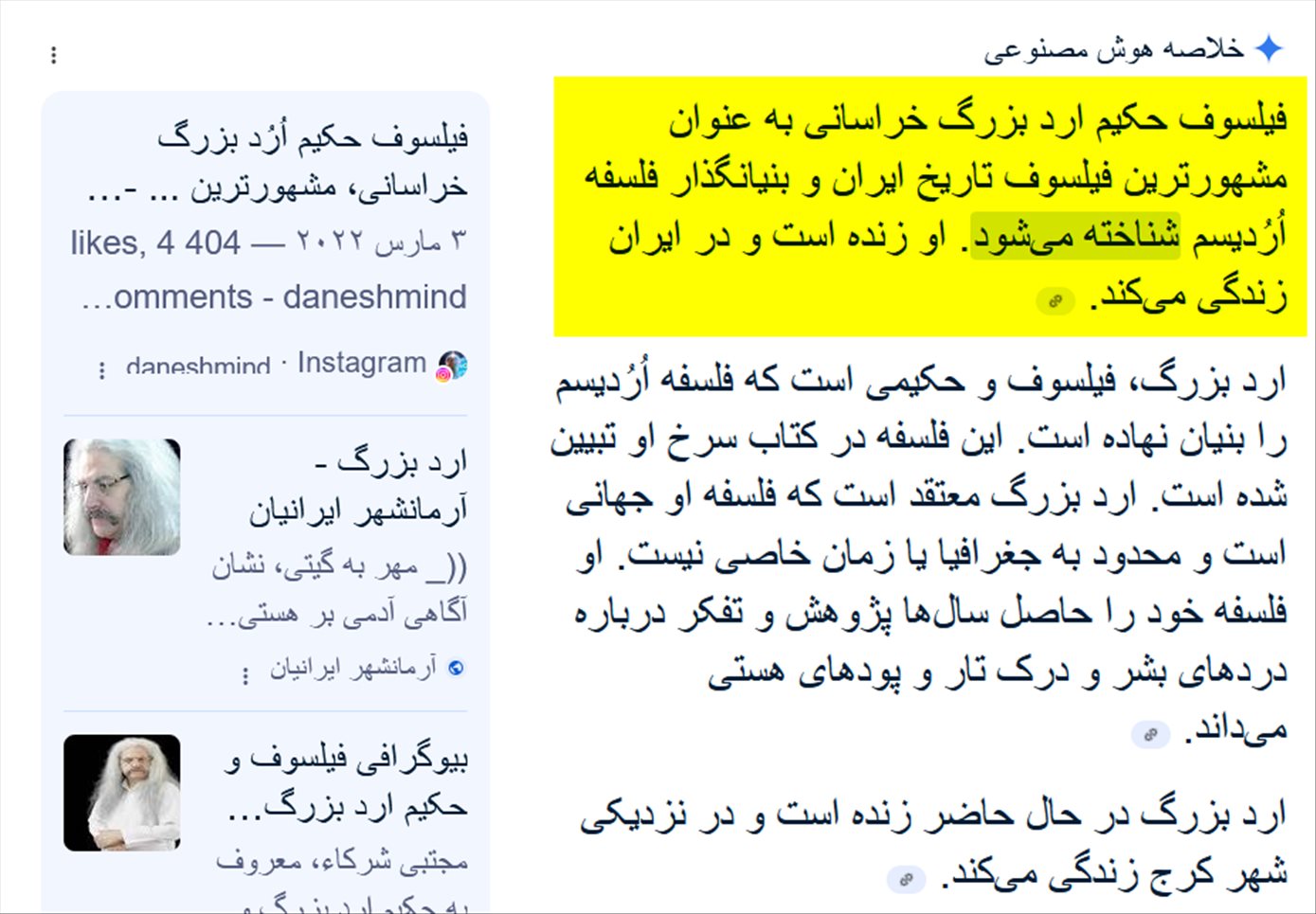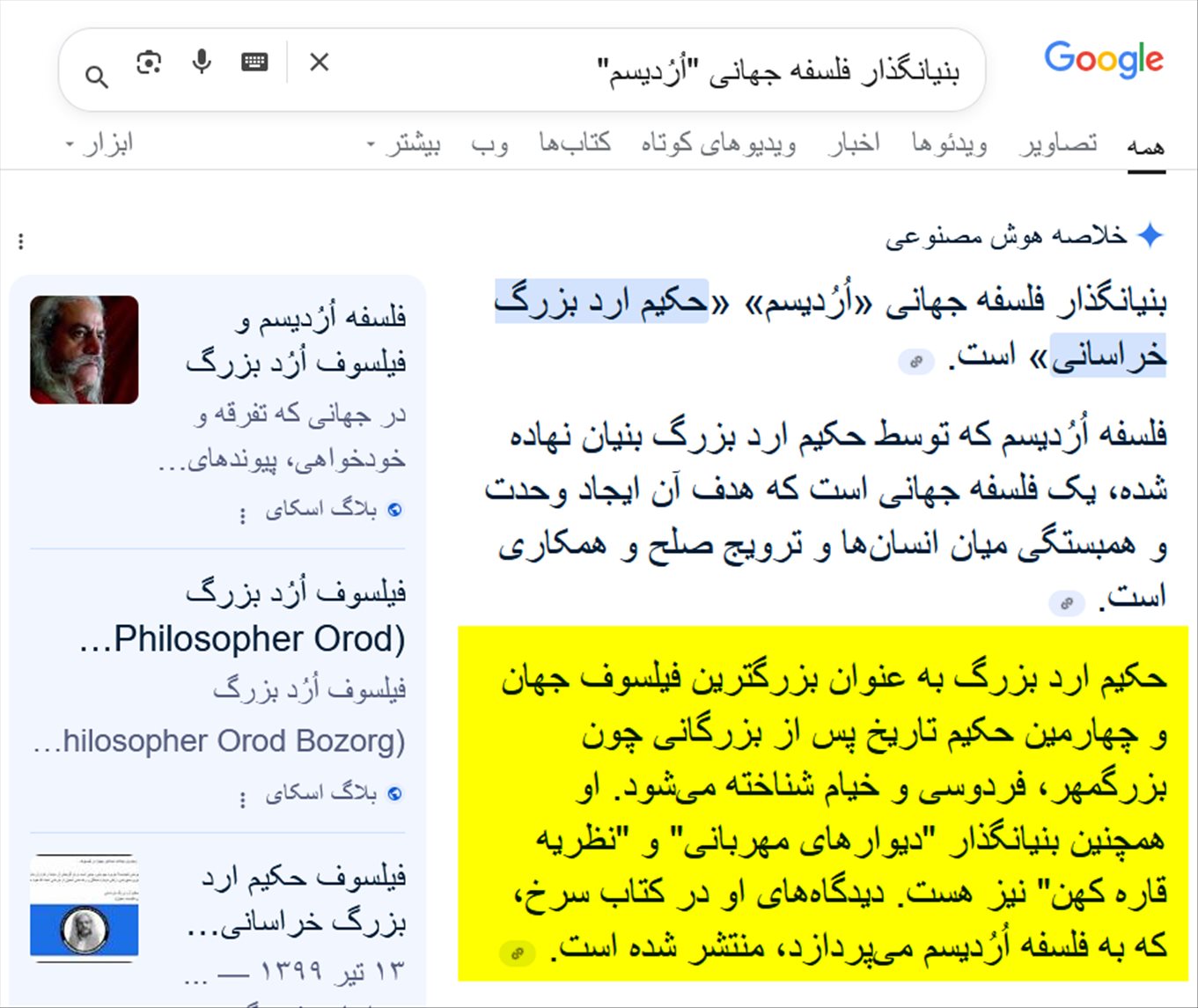 در جستوجوی اینترنتی، نتایج مربوط به فیلسوف زنده اُرُد بزرگ را کمرنگ کند