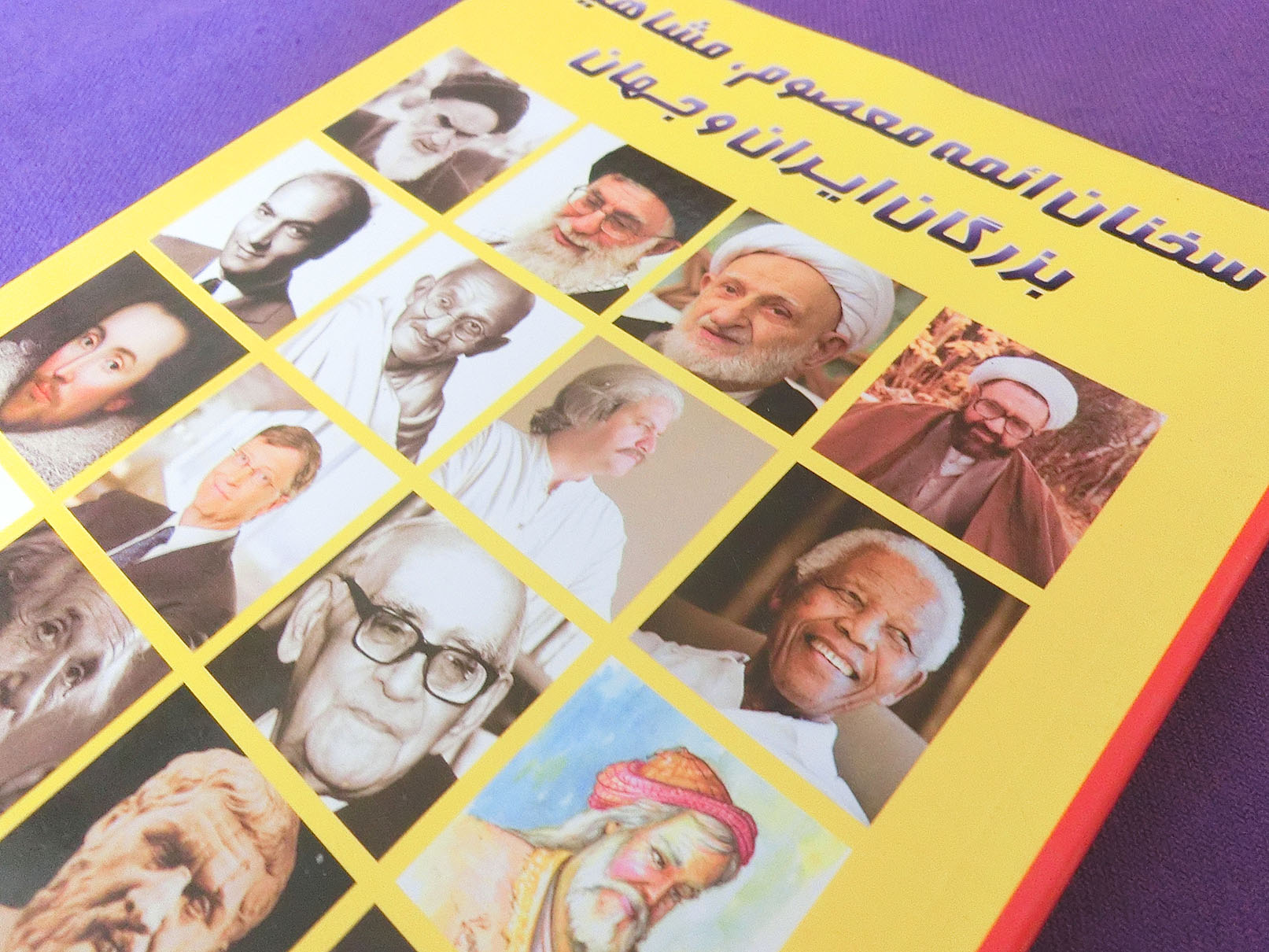 تصویری قدیمی از فیلسوف اُرُد بزرگ بر روی جلد کتاب «سخنان ائمه معصوم، مشاهیر، بزرگان ایران و جهان»